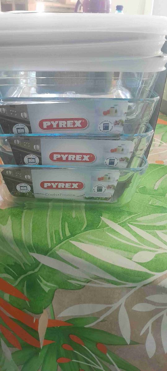 3️⃣- 1 set de 4 plats de cuisson et/ou de conservation en verre avec leurs couvercles blancs (jamais utilisés) 3 000 frs