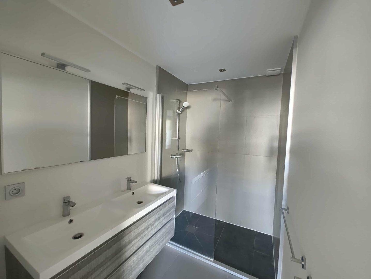 Il se compose d’une entrée, d’un séjour lumineux avec cuisine ouverte et buanderie attenante, d’un dégagement, d’un WC indépendant, ainsi que de deux chambres avec placards, chacune disposant de sa propre salle d’eau.
