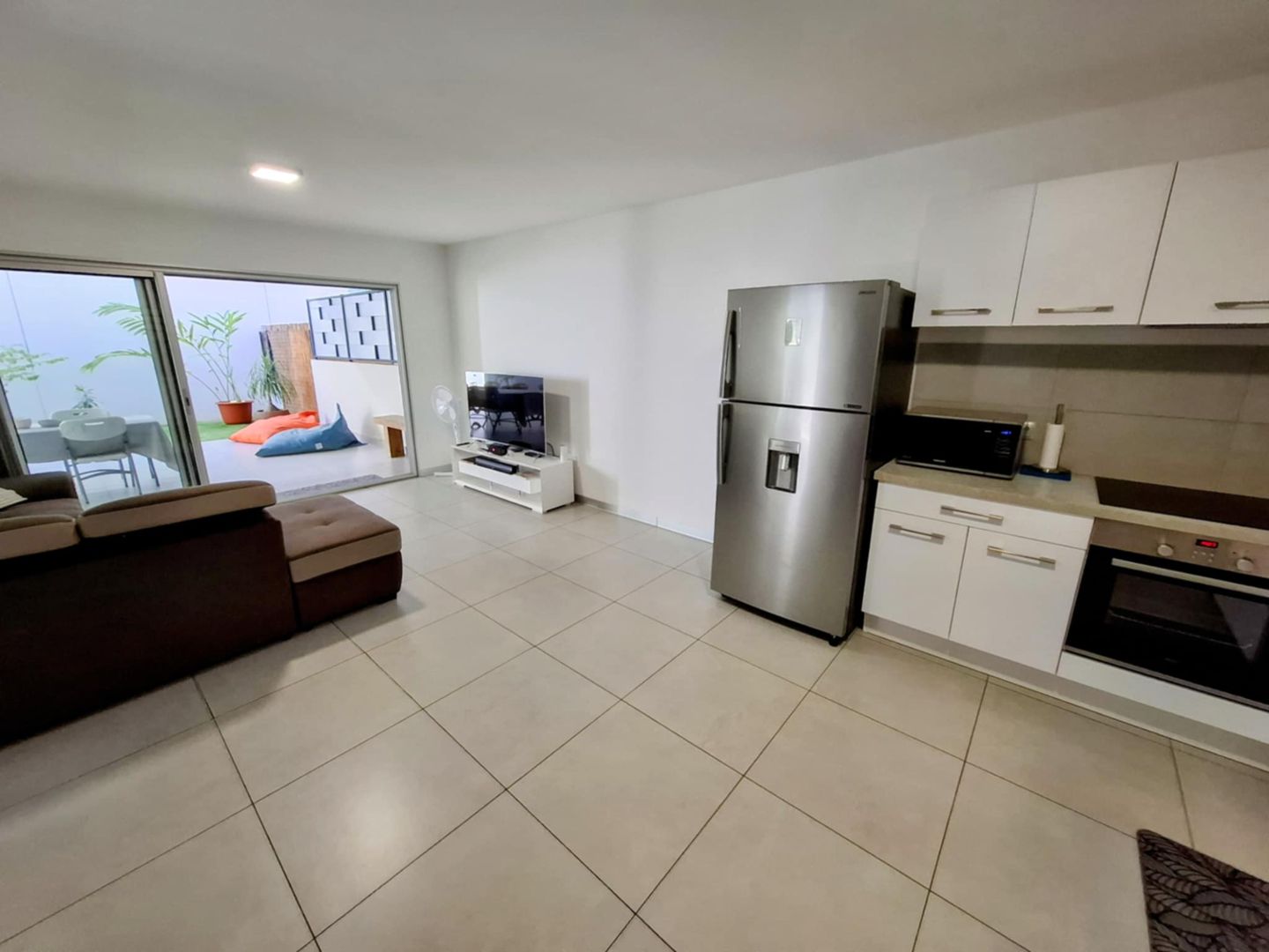 L'appartement offre des prestations de qualité avec une pièce de vie lumineuse s’ouvrant sur un vaste espace extérieur, parfait pour recevoir et profiter des moments de détente.
