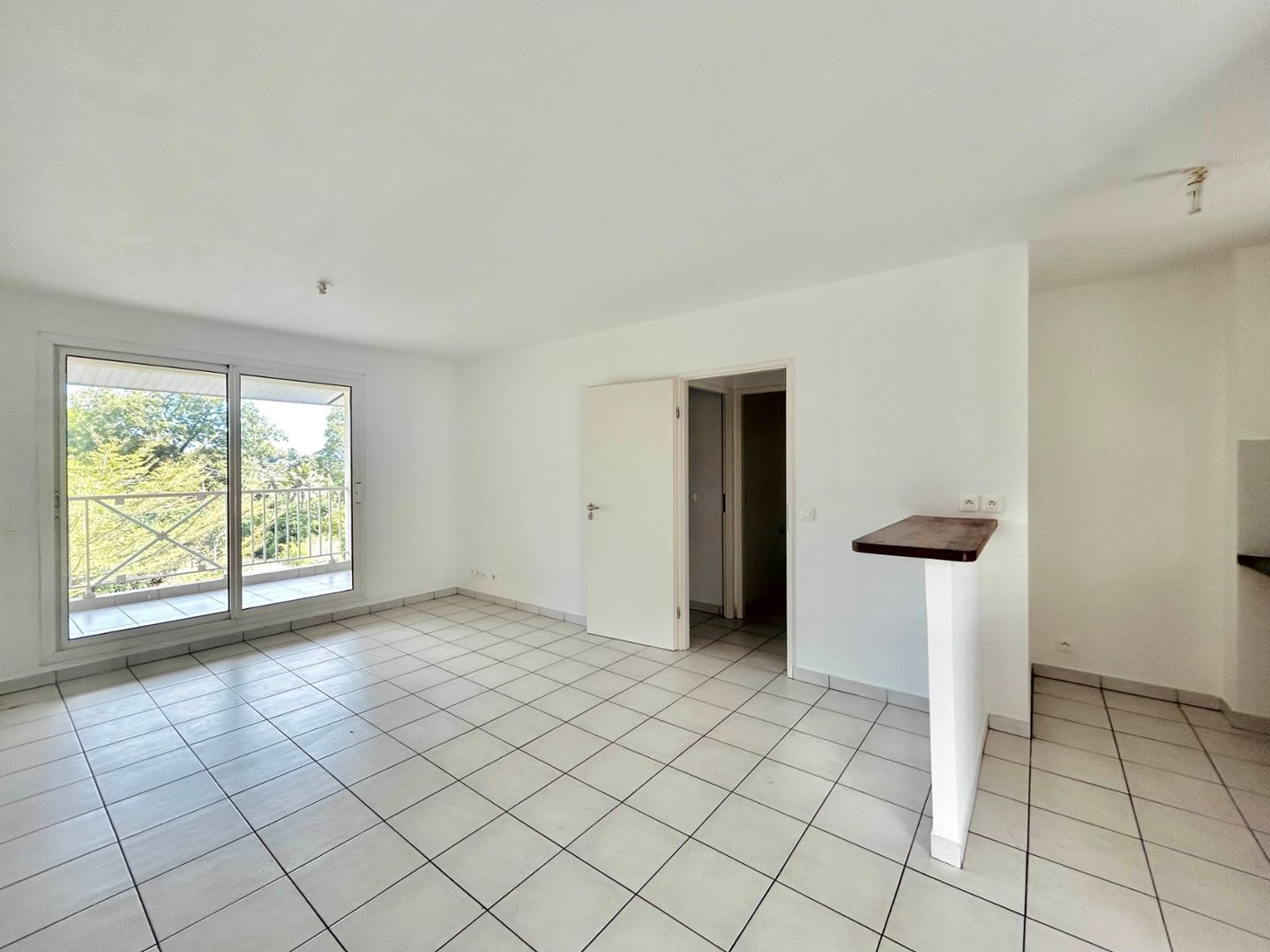 Appartement F2 de 44,47 m2 comprenant un séjour avec coin cuisine, un dégagement, une chambre climatisée avec placard, un wc séparé, une salle d'eau, une terrasse couverte de 11,28 m2.