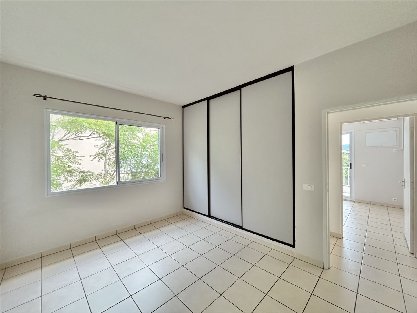 Une première chambre avec placard intégré.