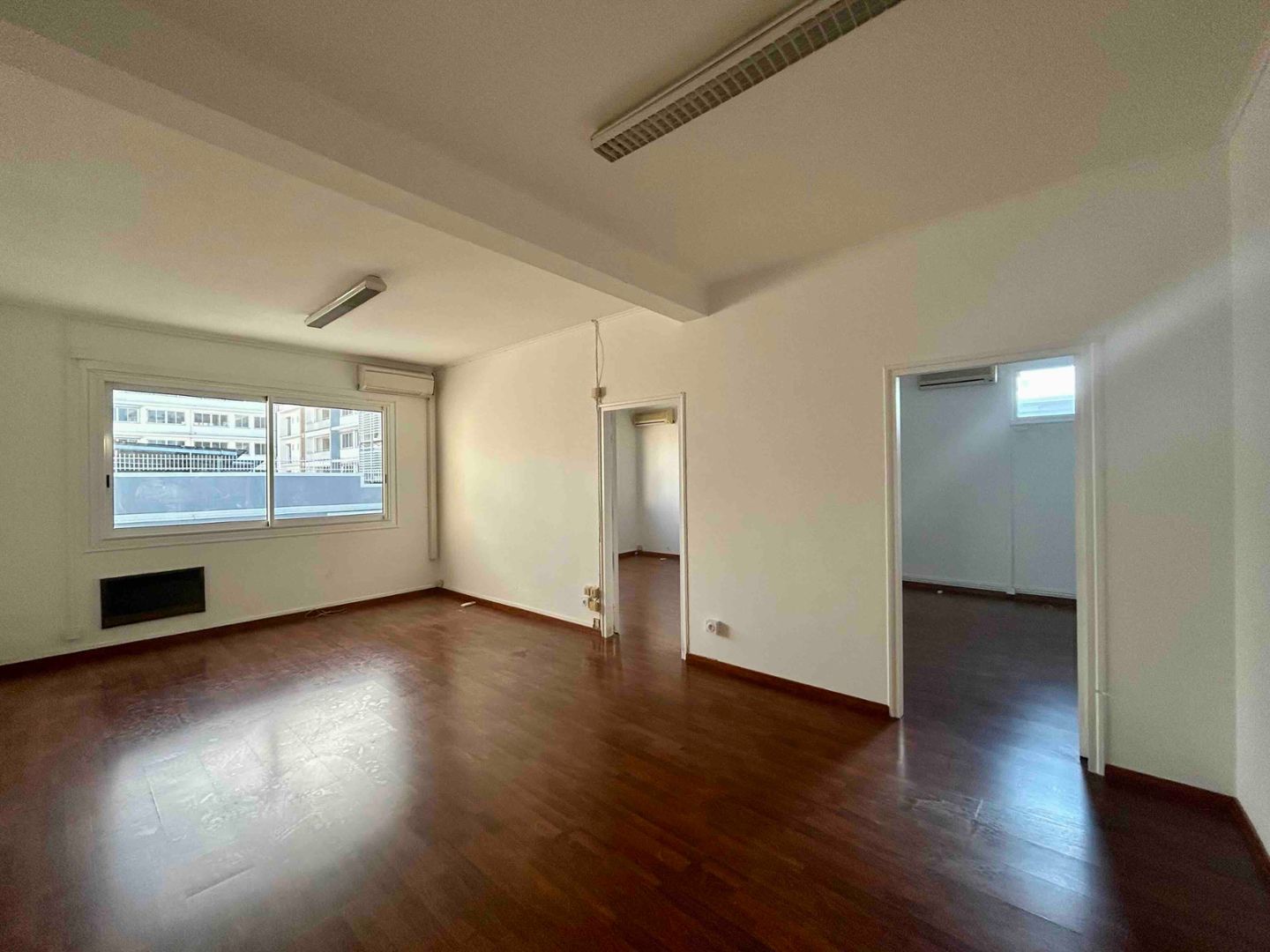 Situés en plein cœur du centre-ville, ces bureaux offrent une superficie totale de 50 m², composée d'une grande pièce principale et de deux bureaux communicants. L'ensemble des locaux est entièrement climatisé.