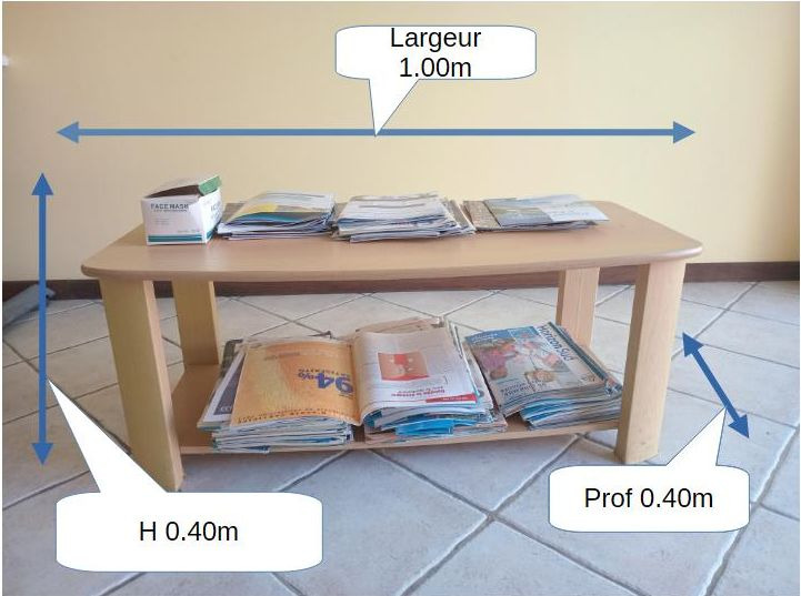 Table basse en mélaminé. Pieds légèrerement abîmés suite à un dégât des eaux, mais la table reste solide. Dimensions sur les photos. 1 500 F, à récupérer sur Nouméa.