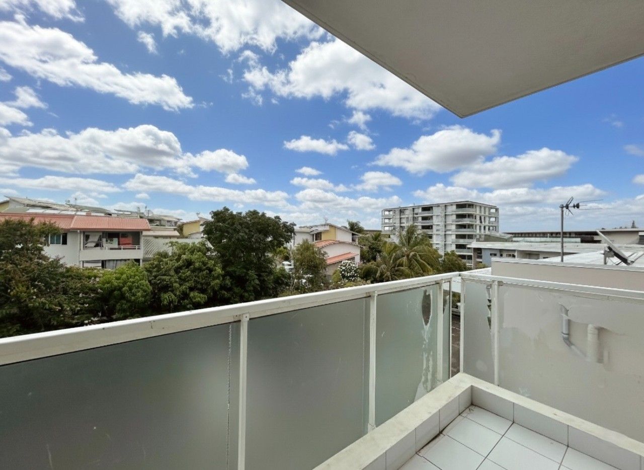 Appartement F2 situé dans la Résidence Koutio Central rue Felix Trombe au troisième étage avec ascenseur composé d'un séjour avec coin cuisine aménagé et équipé d'une hotte avec plaque de cuisson, une chambre avec placard et volet roulant, une salle d'eau avec WC séparé et un balcon de 5,9m2.