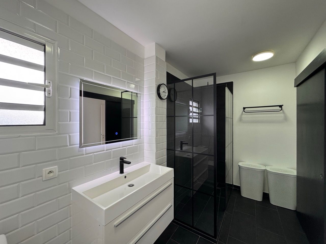Une salle d’eau entièrement rénovée avec WC.