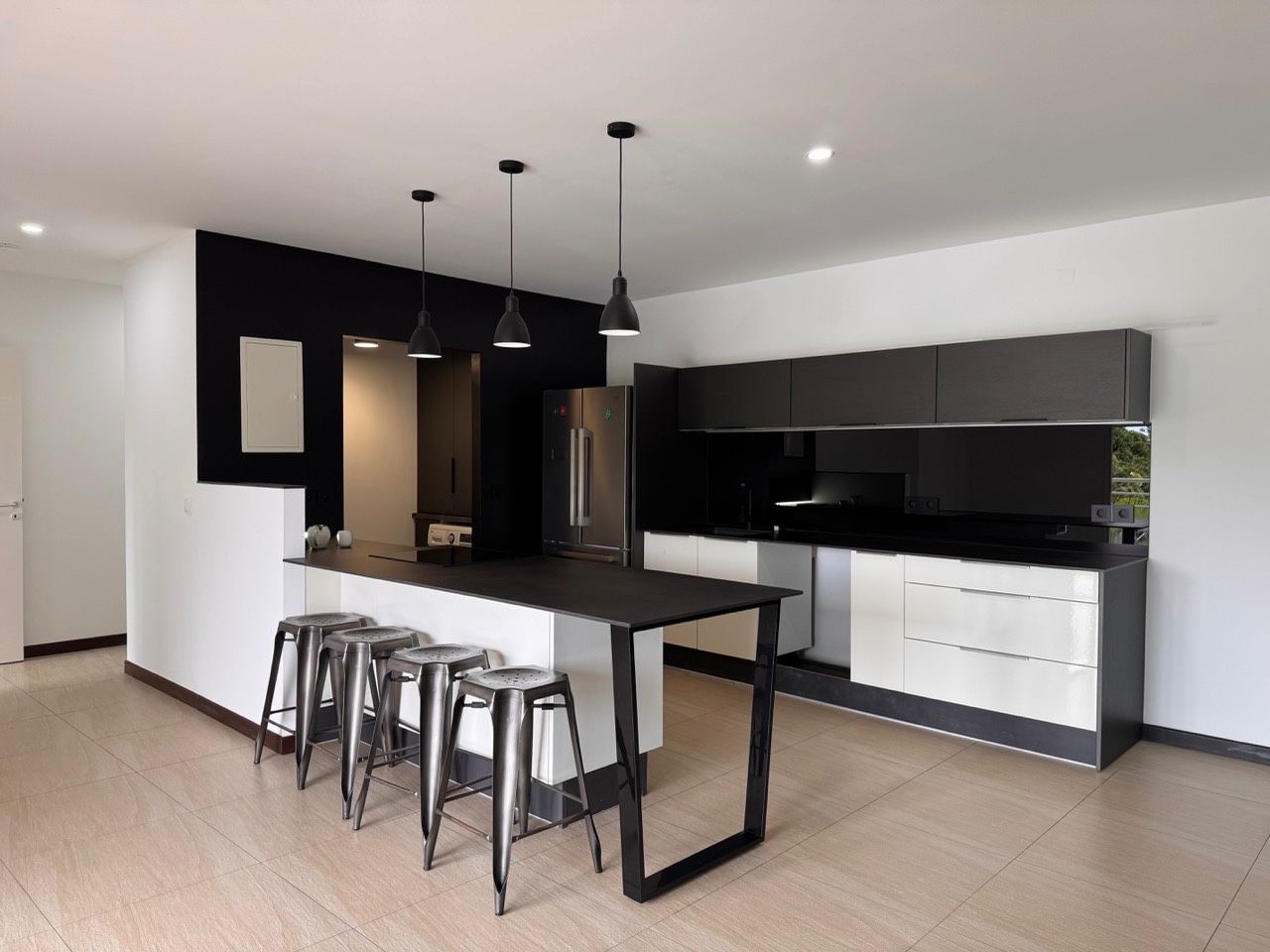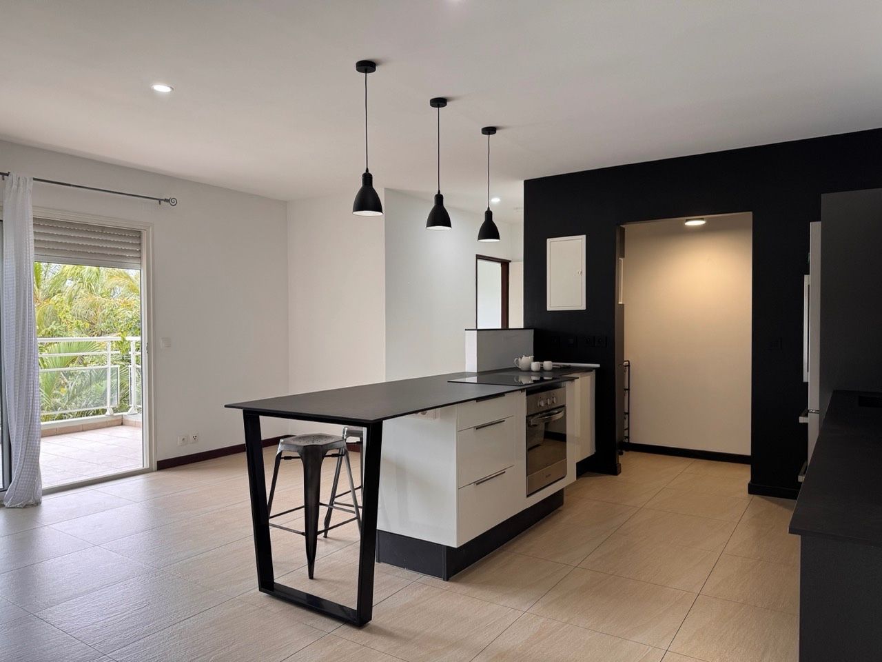 Un séjour lumineux avec volet roulant électrique avec cuisine ouverte entièrement équipée et aménagée,